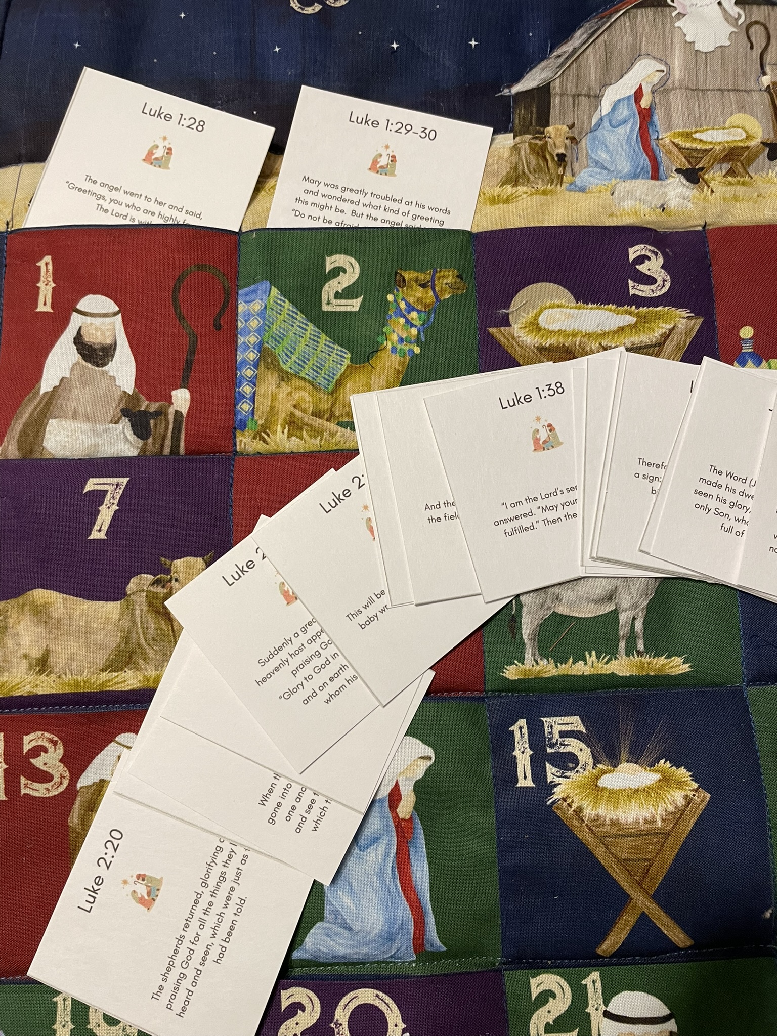 I have also created scripture cards to insert in each pocket to remember the birth os Jesus.
