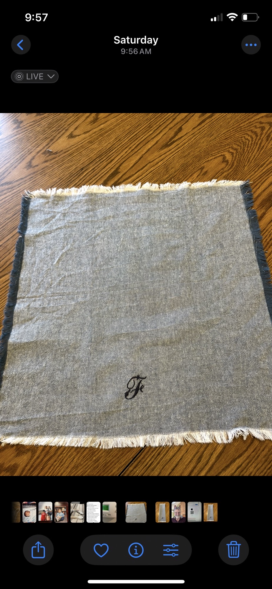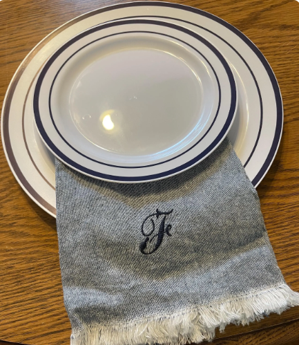 Classy Linen Frayed napkins with Embroidered Monogram – Weddings, special events